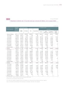População residente com 10 ou mais anos por consumo de tabaco, sexo e grupo etário